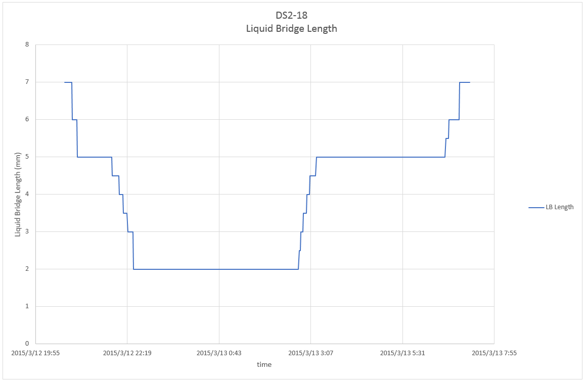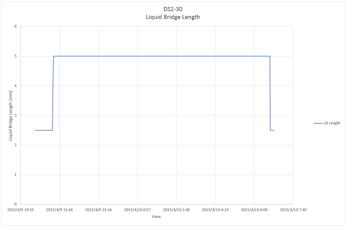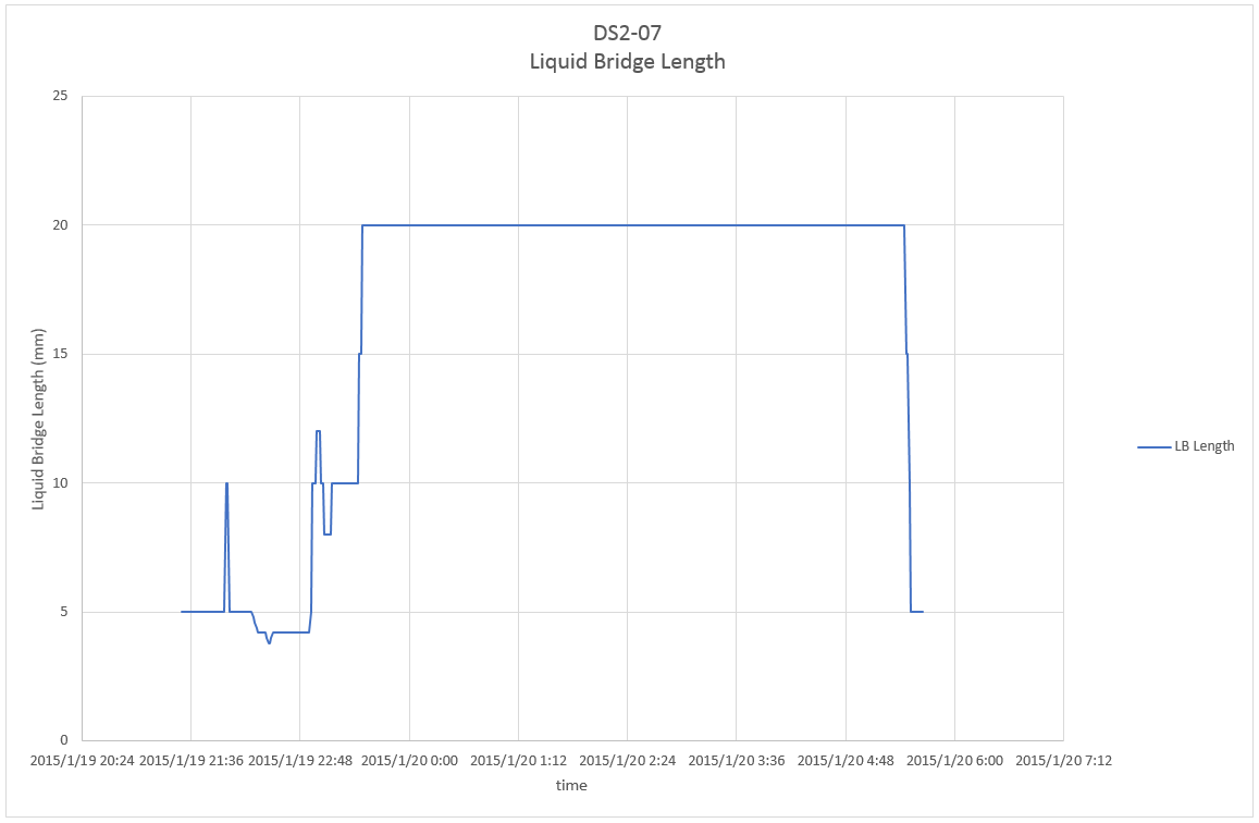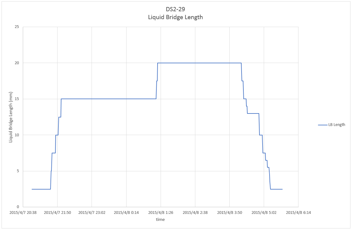 This page shows parameter index of Dynamic Surf 2 (DS2) including details of parameter, profiles of temperature and liquid bridge length, and related telemetry and video data for each experiment run. Click here to check overall information of the experiment.