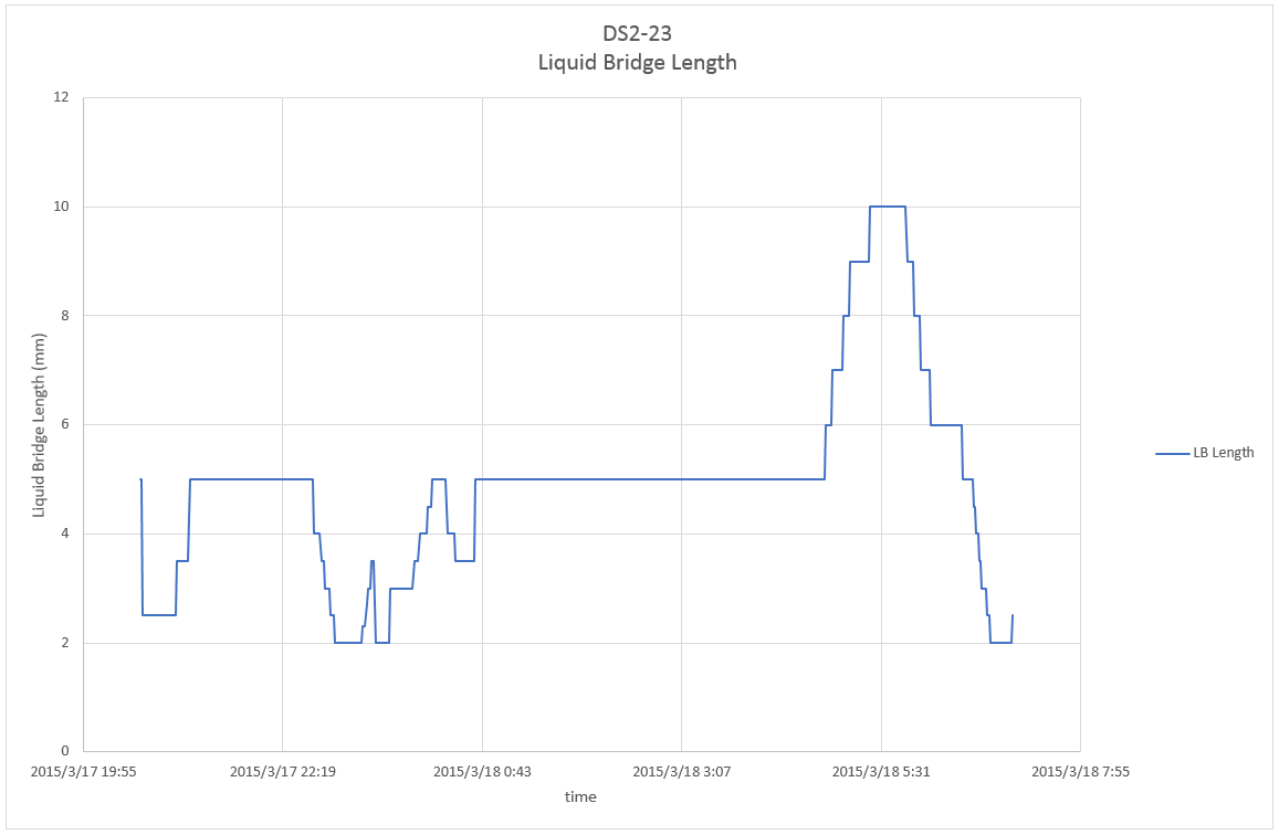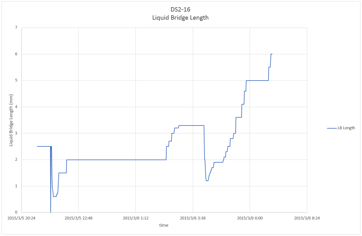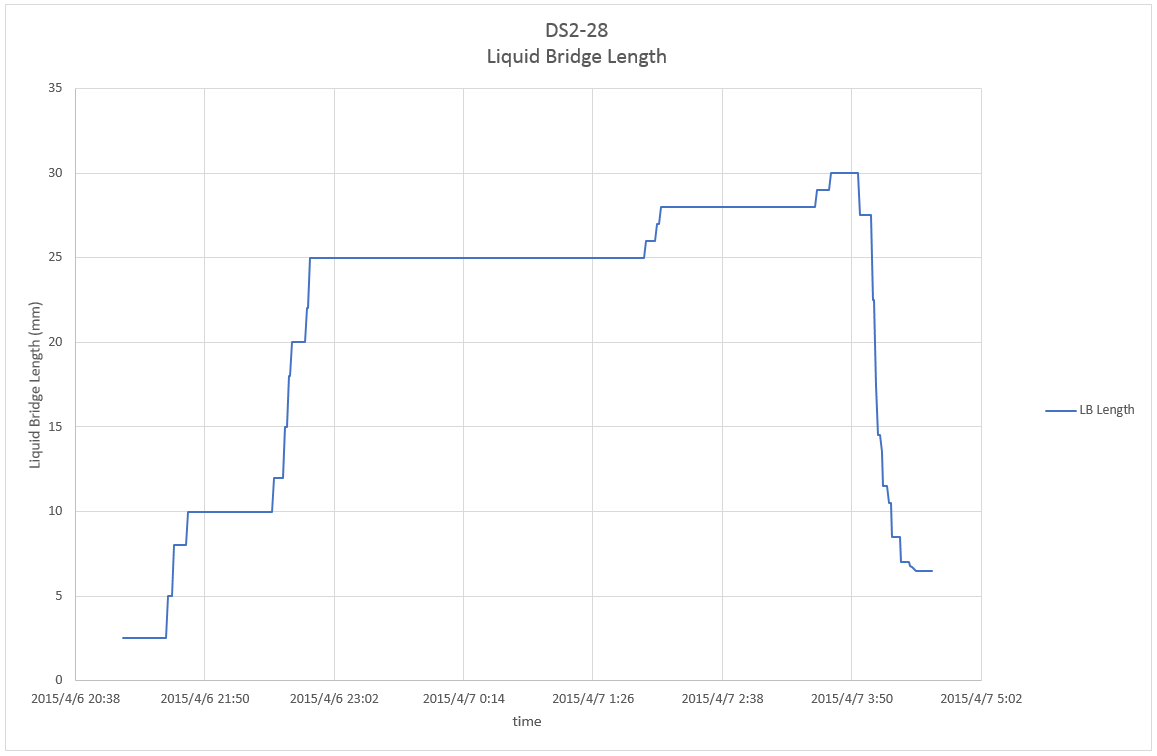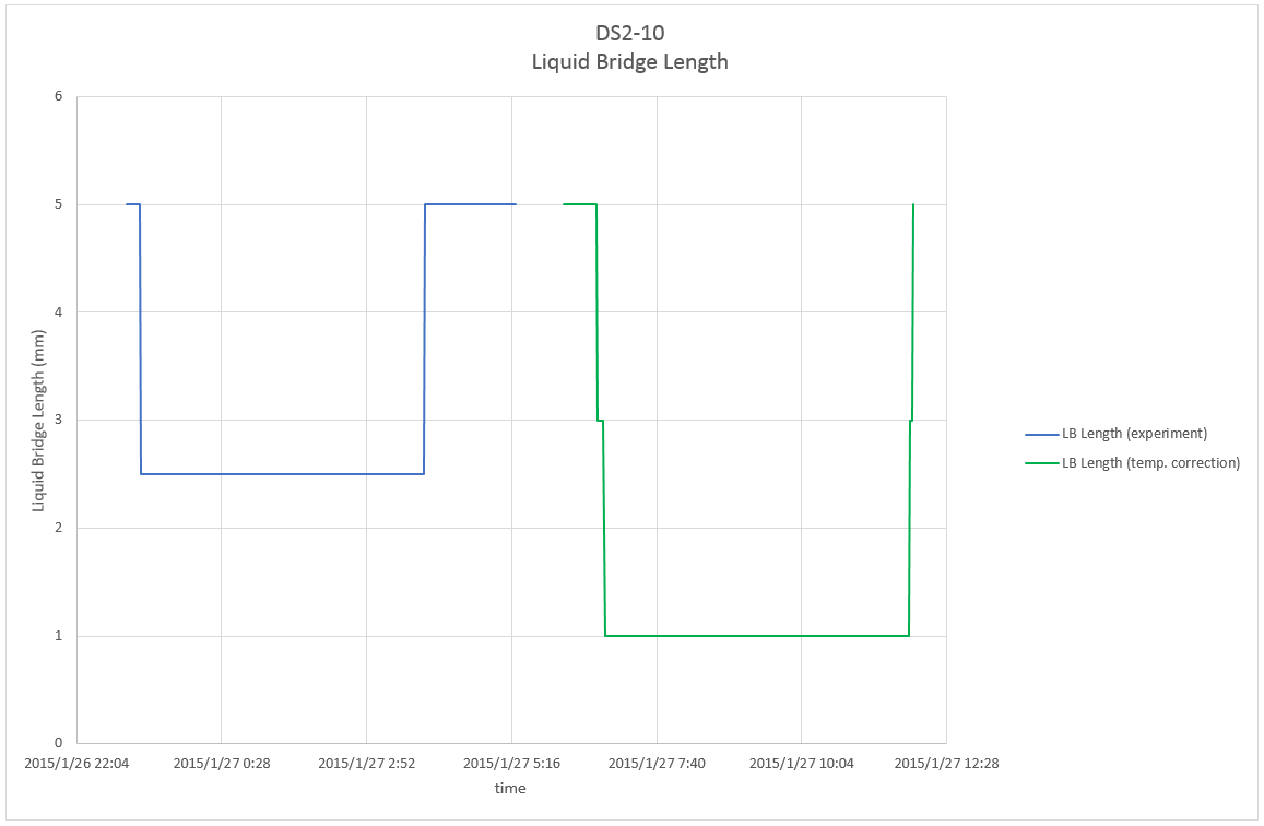 This page shows parameter index of Dynamic Surf 2 (DS2) including details of parameter, profiles of temperature and liquid bridge length, and related telemetry and video data for each experiment run. Click here to check overall information of the experiment.